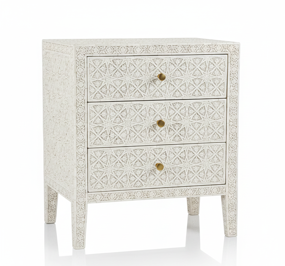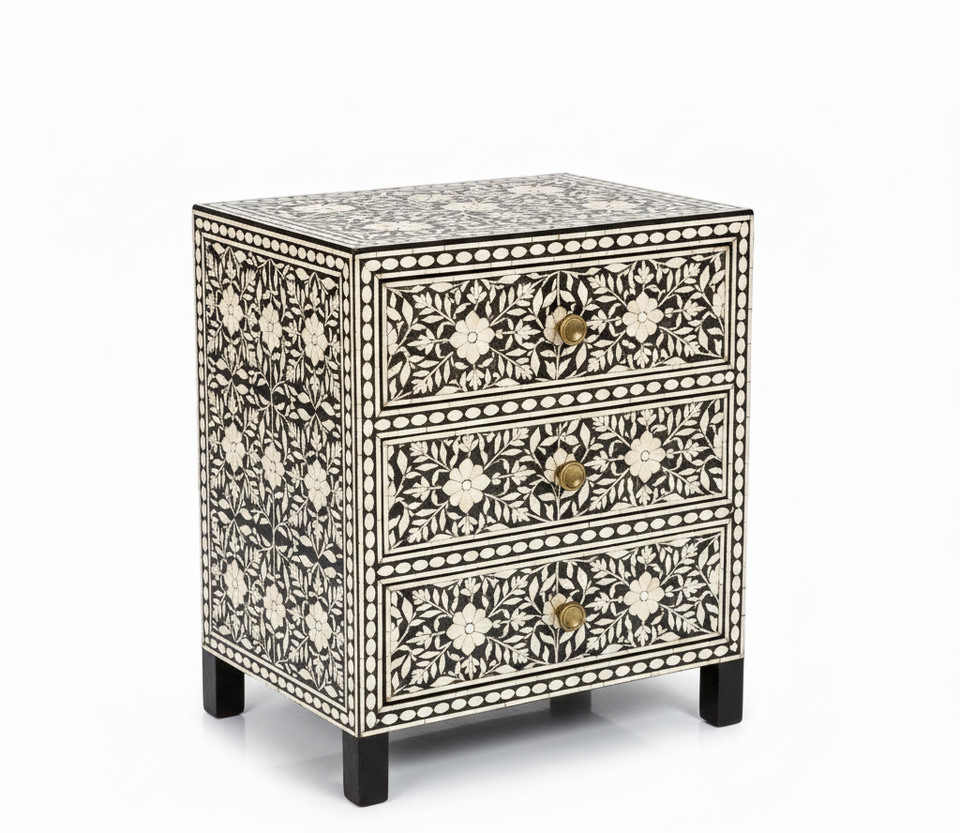โต๊ะข้างเตียงไม้ฝังกระดูกสไตล์แฟนตาซี งานฝีมือคุณภาพพรีเมียม ทนทาน ลายดอกไม้ สำหรับเฟอร์นิเจอร์ห้องนั่งเล่น