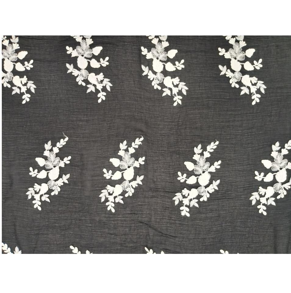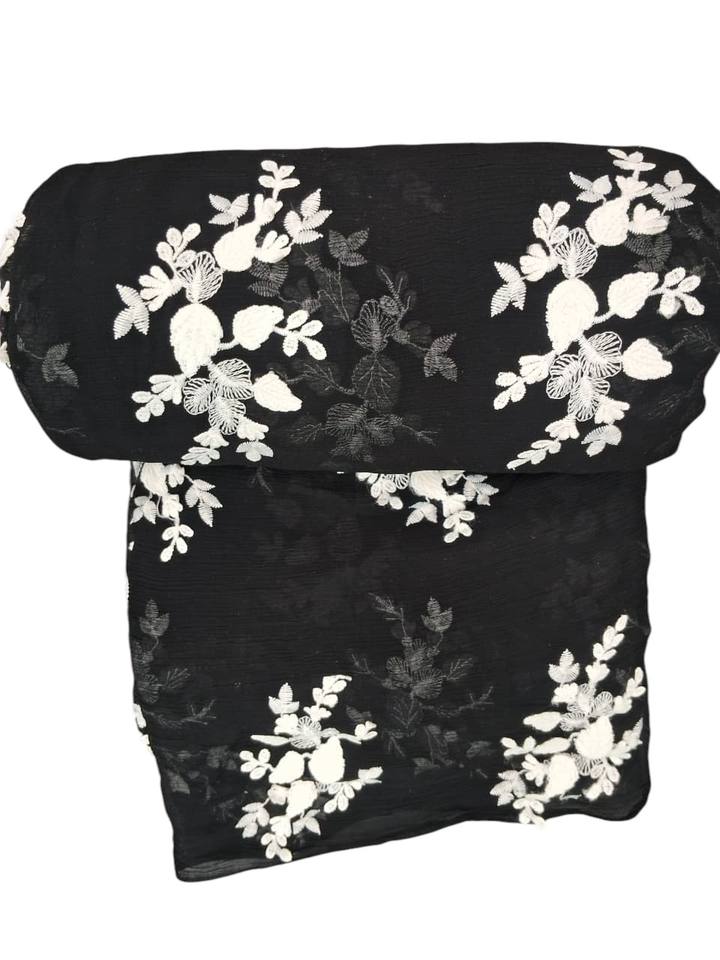 Black Chiffon Floral Embroidered Fabric