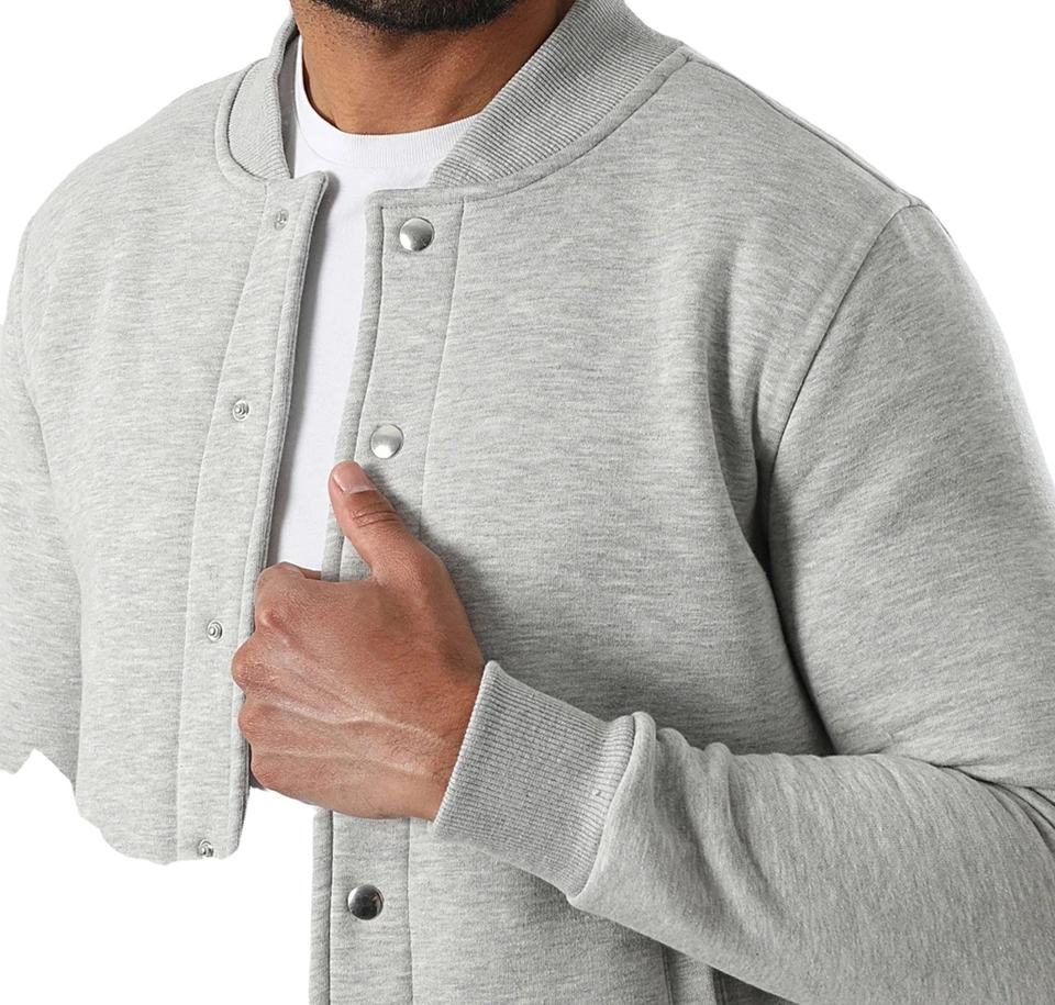 เสื้อแจ็คเก็ตฟลีซคุณภาพพรีเมียม สกรีนโลโก้ได้ตามสั่ง ขายส่งเสื้อแจ็คเก็ตเบสบอลแบบเรียบๆ สำหรับผู้ชาย