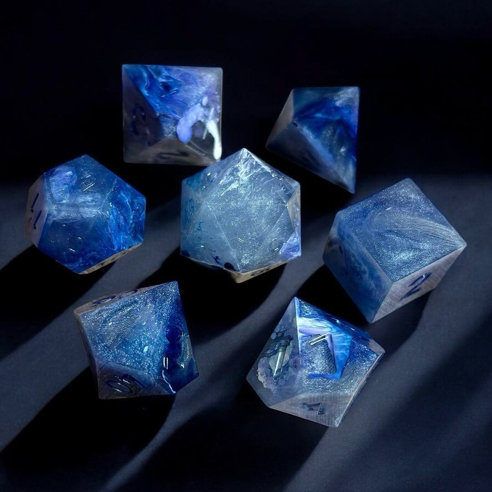 ชุดลูกเต๋าเรซิ่นคุณภาพพรีเมียม งานแฮนด์เมด สำหรับเกม RPG | ลูกเต๋า D&D หลายเหลี่ยมขอบคมสีสันตามสั่ง ทนทานสำหรับครอบครัว