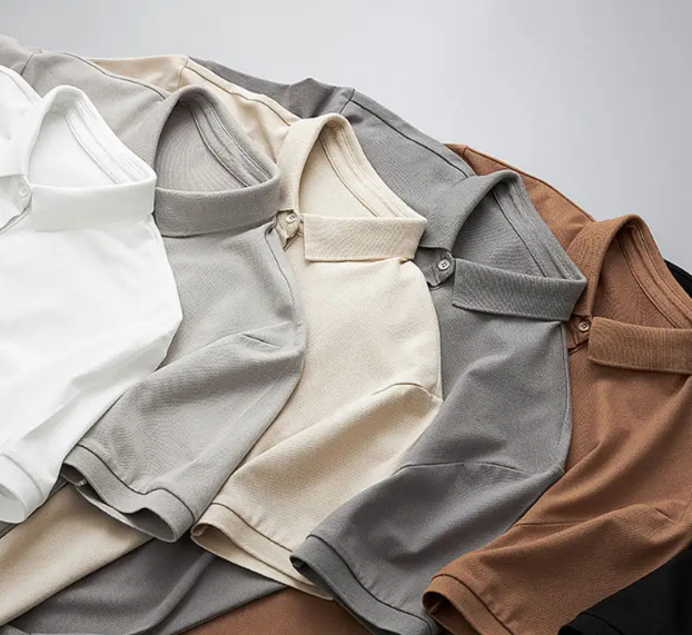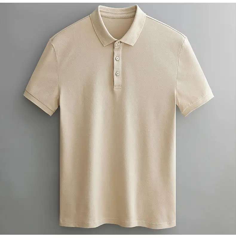 เสื้อโปโลแขนสั้นสำหรับผู้ชายเสื้อโปโลผ้าโพลีเอสเตอร์มีกระดุมสำหรับผู้ชาย