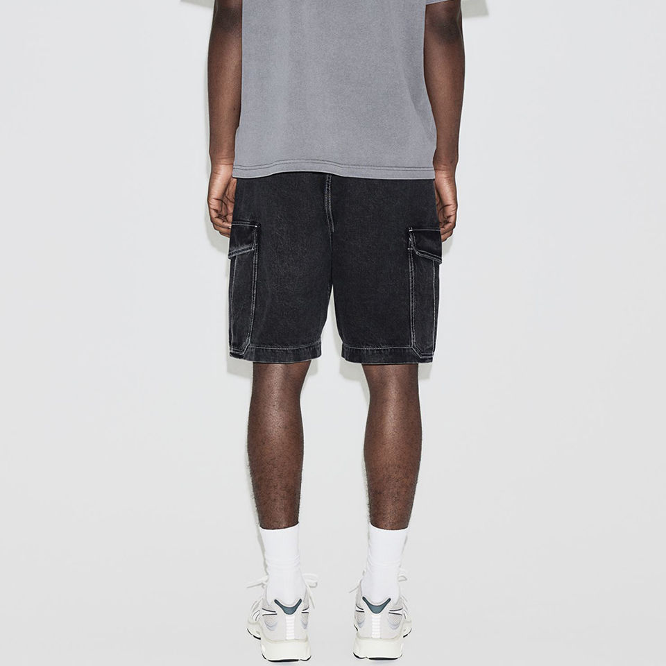 กางเกงขาสั้นผ้ายีนส์ของผู้ชายสีทึบสไตล์ไม่เหมือนใคร
