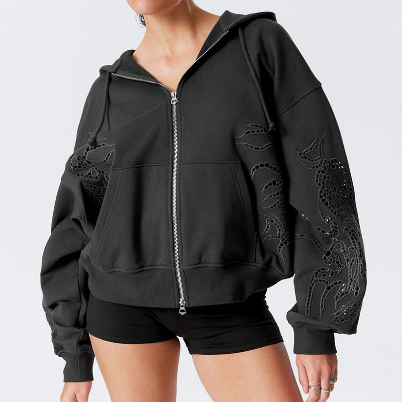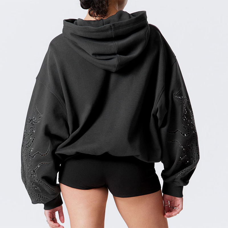 เสื้อฮู้ดดี้โอเวอร์ไซส์แฟชั่นสำหรับผู้หญิง คุณภาพพรีเมียม ขายส่ง สำหรับฤดูใบไม้ร่วงและฤดูหนาว แต่งลายปักแบบมีเท็กซ์เจอร์ พร้อมดีไซน์รูขาดแบบวินเทจ