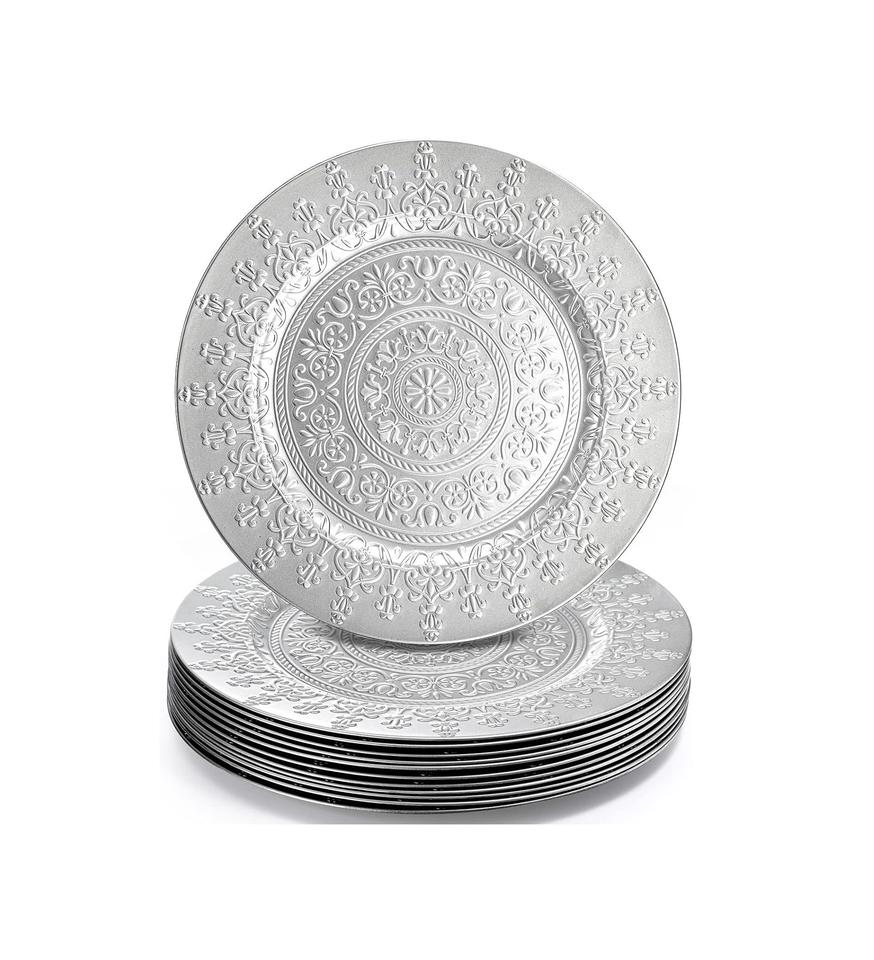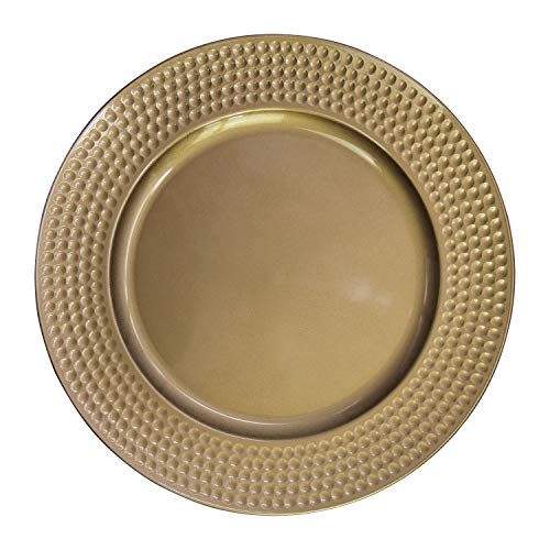 แผ่นที่ชาร์จโลหะทรงกลมสีทองสำหรับตกแต่งโต๊ะรับประทานอาหารงานทำมือคุณภาพระดับพรีเมียมสำหรับการแสดงผลในการตั้งค่าโต๊ะอย่างหรูหรา