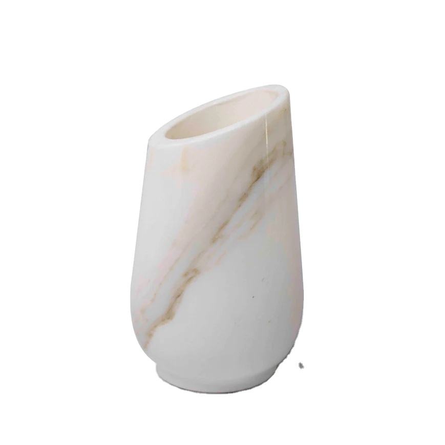 แจกันดอกไม้หินอ่อนสีขาวหินอ่อนของตกแต่งบ้านและห้องนั่งเล่นทำจากหินอ่อน