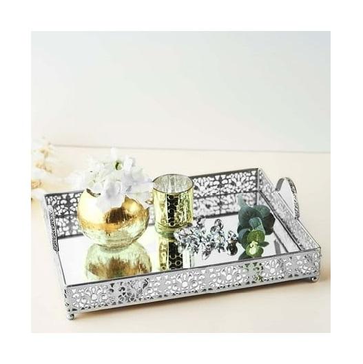 ถาดกระจกโลหะทรงกลมแบบพรีเมี่ยมสำหรับเทียนน้ำหอมและจัดแต่งทรงผมในห้องด้วยการออกแบบกระจกสะท้อนแสงที่ทันสมัยและสะอาด
