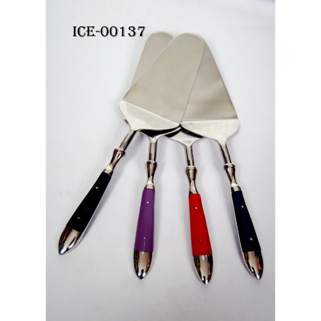 ชุดอุปกรณ์ตัดเค้กสแตนเลสพรีเมียม ดีไซน์ใบมีดสามเหลี่ยมทันสมัย ด้ามจับหลากสีตามหลักสรีรศาสตร์ จับถนัดมือ ราคาขายส่ง