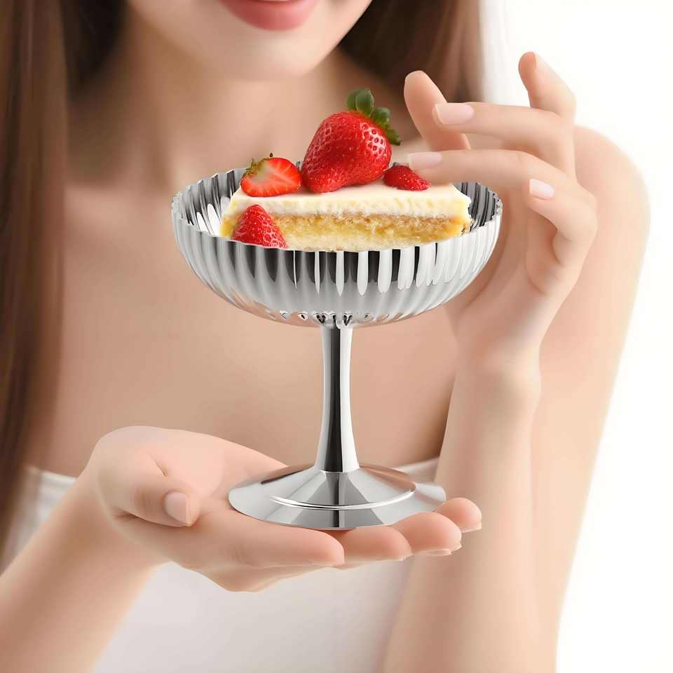 ถ้วยเสิร์ฟขนมหวานสแตนเลสเกรดพรีเมียม ภาชนะใส่อาหารสำหรับงานเลี้ยง โรงแรม ครัว จัดวางขนมหวานอย่างสวยงาม ใช้ในบ้านได้