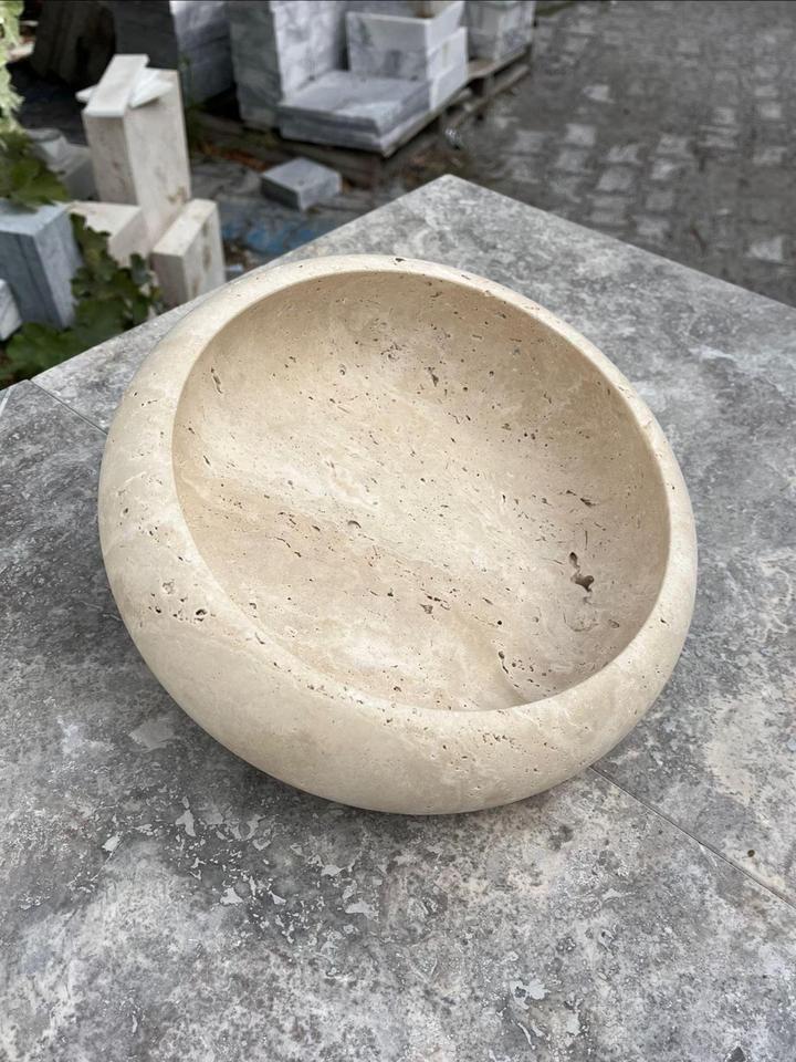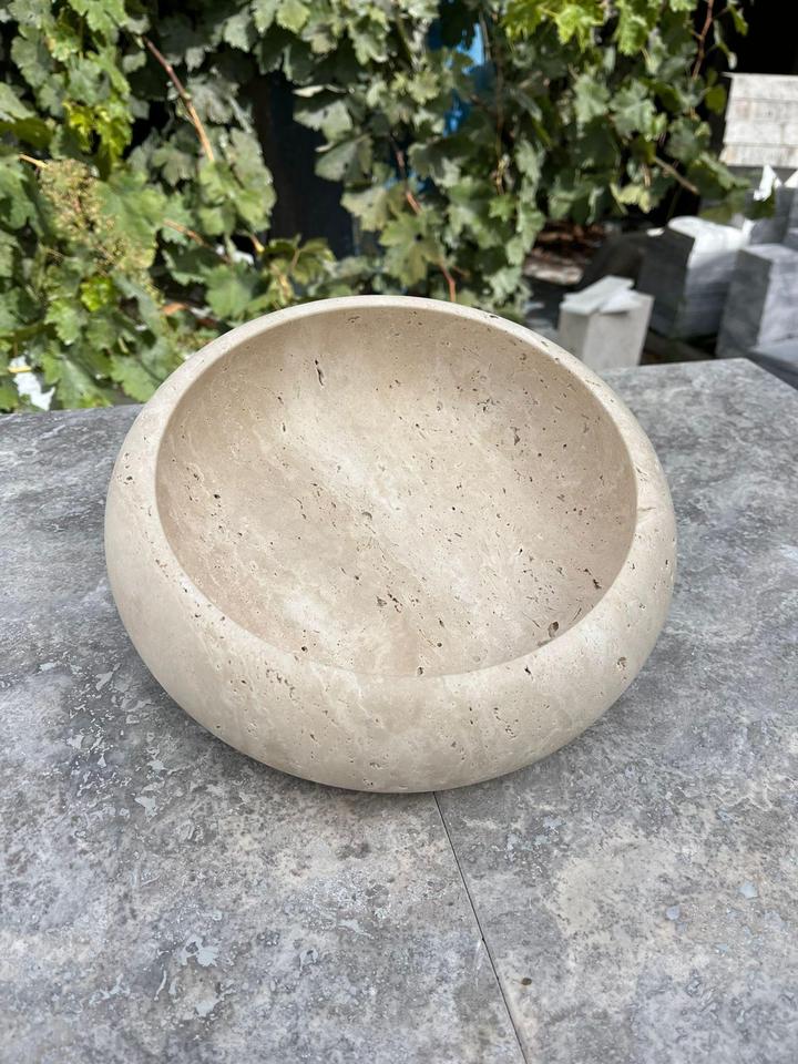 Premium travertine stone round bowl with smooth handcrafted finish modern decor appeal and long lasting durability