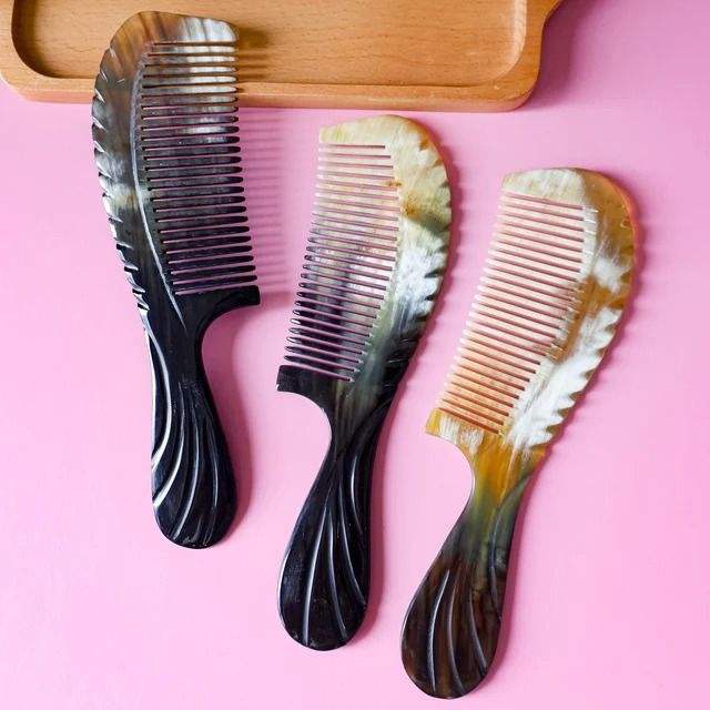 หวีเขาควายสำหรับปลูกผมหวีผมแบบ100% ตามธรรมชาติหวีซี่ห่างแบบกว้างใช้ปรับแต่งได้
