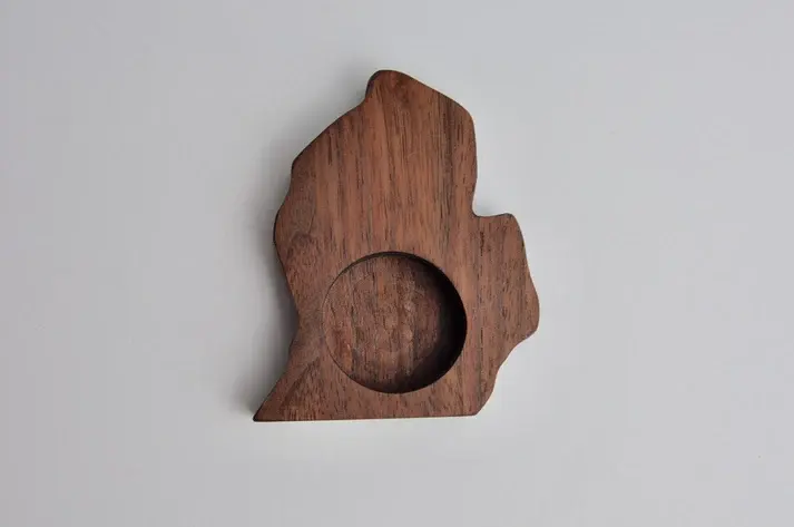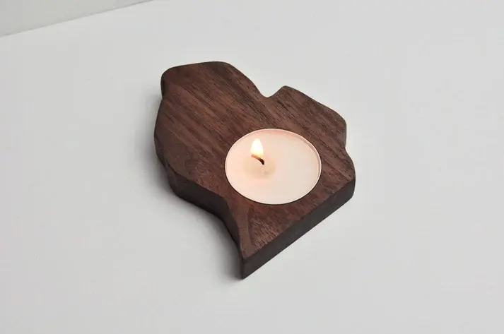 เชิงเทียนไม้พรีเมียม รูปทรงนามธรรมที่เป็นเอกลักษณ์ พื้นผิวขัดเงา เหมาะสำหรับตกแต่งห้องนั่งเล่น