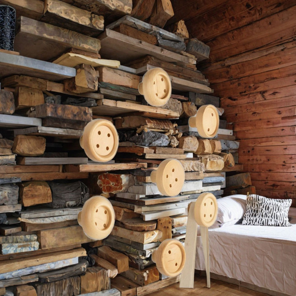 ตะขอแขวนผนังไม้พรีเมียม ลายจุดทันสมัย สำหรับแขวนผนังและจัดระเบียบเสื้อผ้า