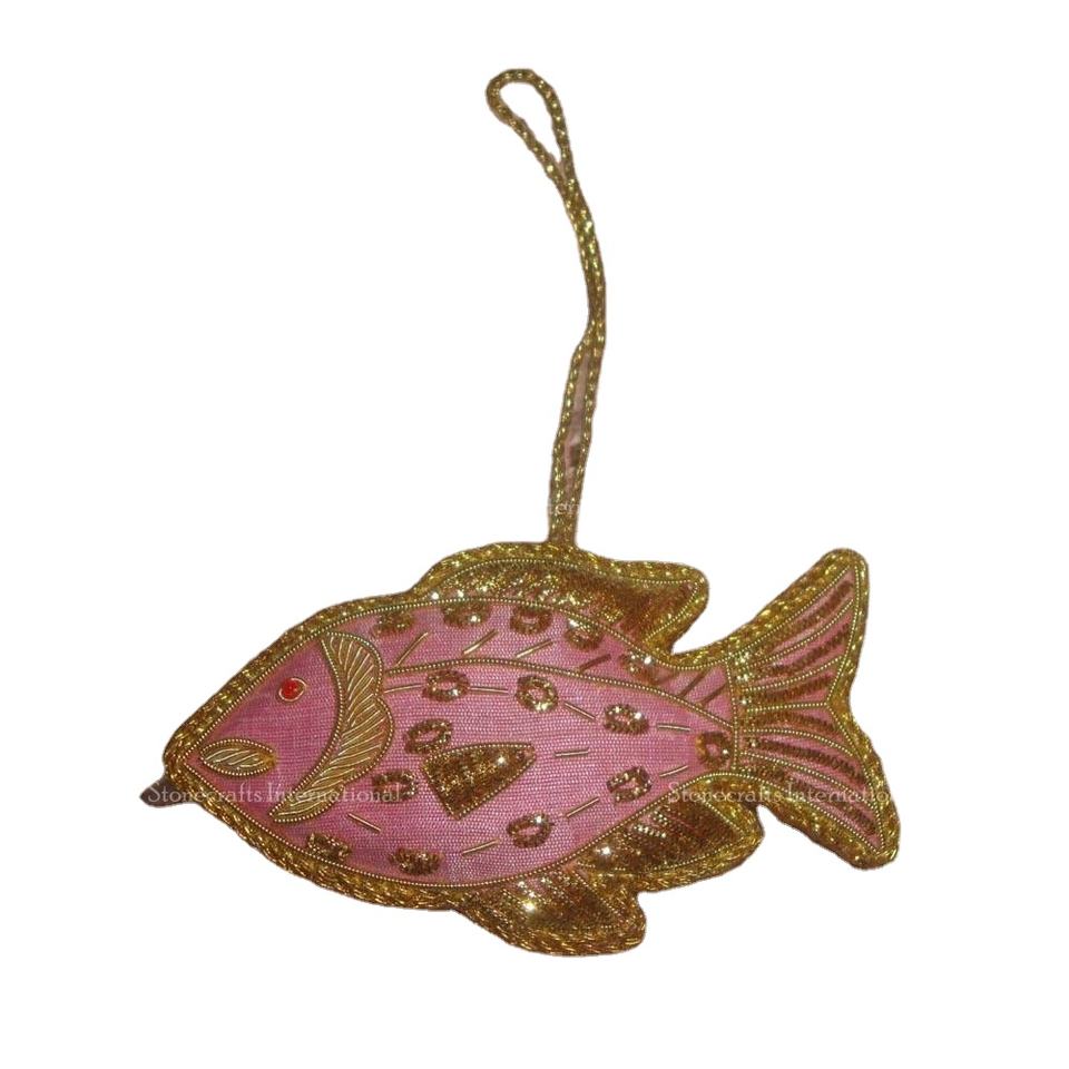 พรีเมี่ยมงานเย็บปักถักร้อยรูปปลาสีชมพูเครื่องประดับที่แขวนอยู่ทั่วโลกเครื่องประดับต้นคริสต์มาสเครื่องประดับอินเดีย