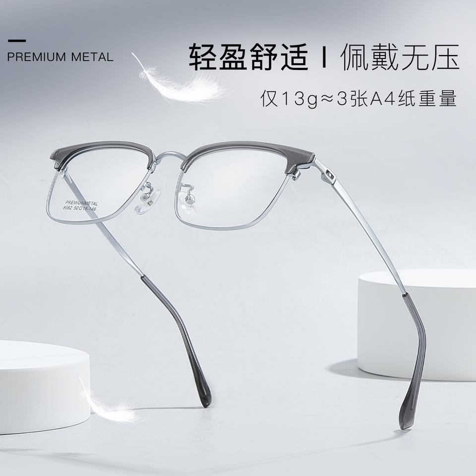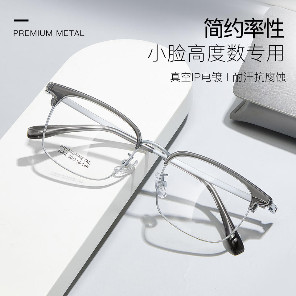 กรอบแว่นตาโลหะพรีเมี่ยม 8082 50-18-146 ทรงสี่เหลี่ยมผืนผ้า สำหรับทุกเพศ แบบเต็มกรอบ แว่นตาโลหะผสมที่สวมใส่สบาย