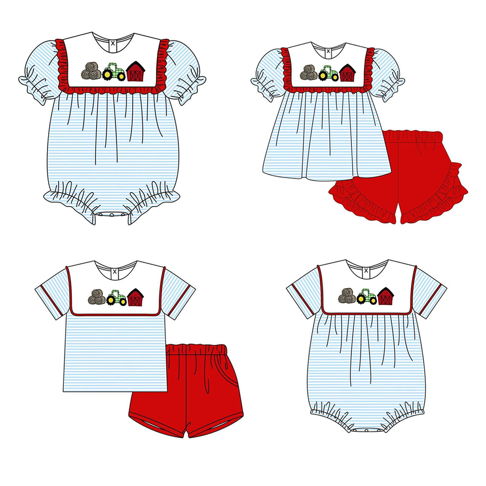 สั่งจองล่วงหน้าขั้นต่ำ 5 ชิ้น เสื้อผ้าเด็กพิมพ์ลายฟาร์มสำหรับวันหยุด ผ้าเนื้อนุ่มสำหรับฤดูร้อน ขายส่งเสื้อผ้าพี่น้อง ราคาโรงงาน แฟชั่นสำหรับเด็กวัยเตาะแตะ