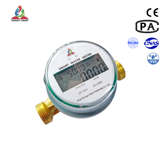 มิเตอร์น้ำทองเหลืองแบบเติมเงิน ZHONGYI OEM รุ่น Multi-Jet DN15 IP65 พร้อมโมดูล LORAWAN/GPRS/WIFI/NBIOT แบบไม่มีวาล์ว 0.031-7.875 ลิตร/ชม.