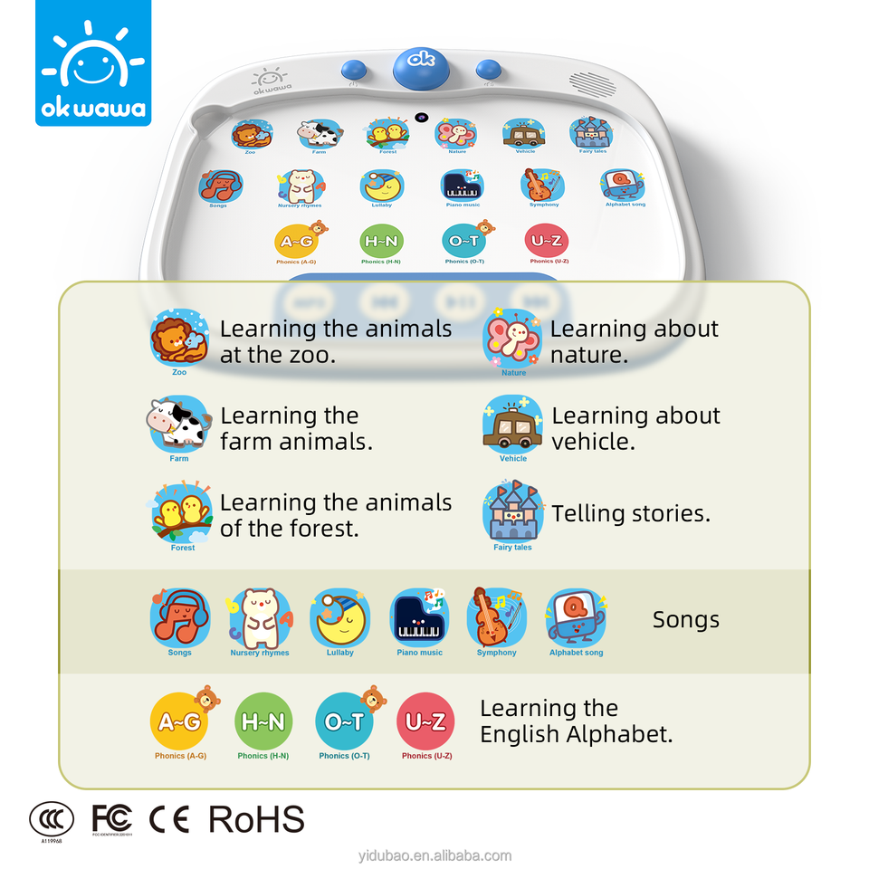 แท็บเล็ตการเรียนรู้อัจฉริยะสำหรับเด็กก่อนวัยเรียนการเล่นเรื่องราวเกมปริศนาพร้อมแฟลชการ์ดการตรัสรู้ในวัยเด็ก