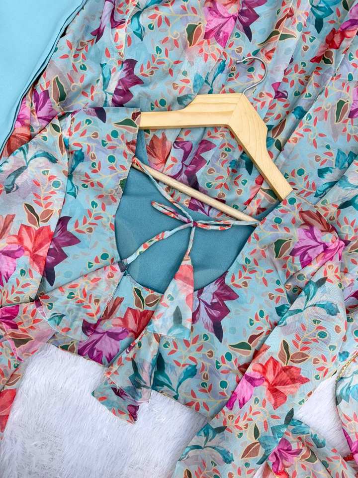 ชุดอานาร์กาลีแบบใหม่ล่าสุด ผ้าออร์แกนซ่าพิมพ์ลายดอกไม้ พร้อมชุดเดรสทรงยาวและกางเกงขายาว พร้อมผ้าคลุมไหล่