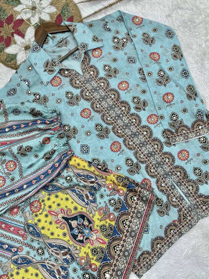 Product Name:Chinon Silk Digital Print Real Mirror With Stone Hand Work Top Palazzo