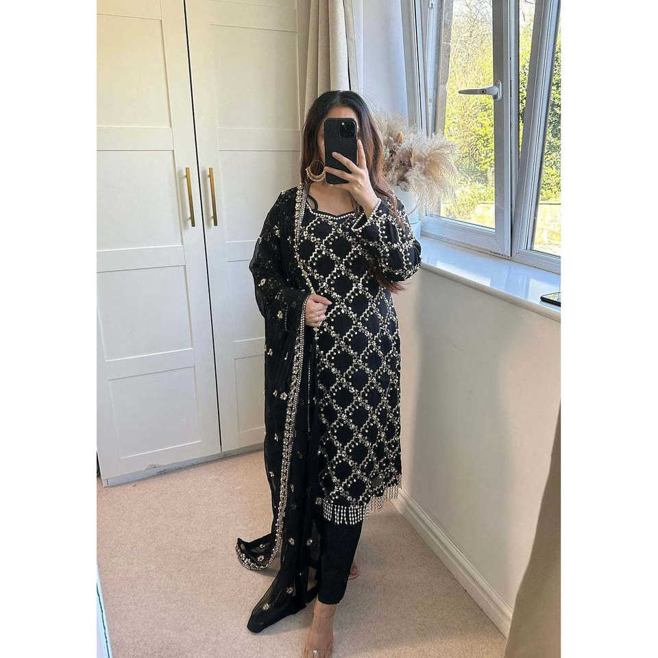 นำเสนอนักออกแบบใหม่เสื้อแขนยาวกางเกงและ duppta ใน UC-5002สไตล์แฟนซี