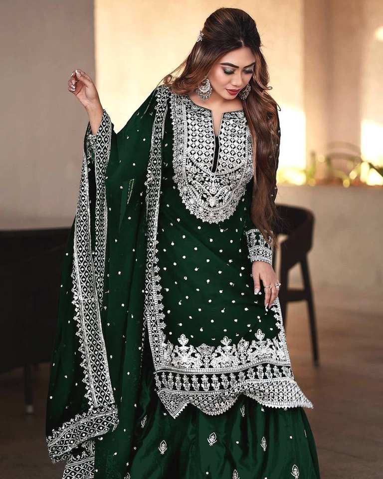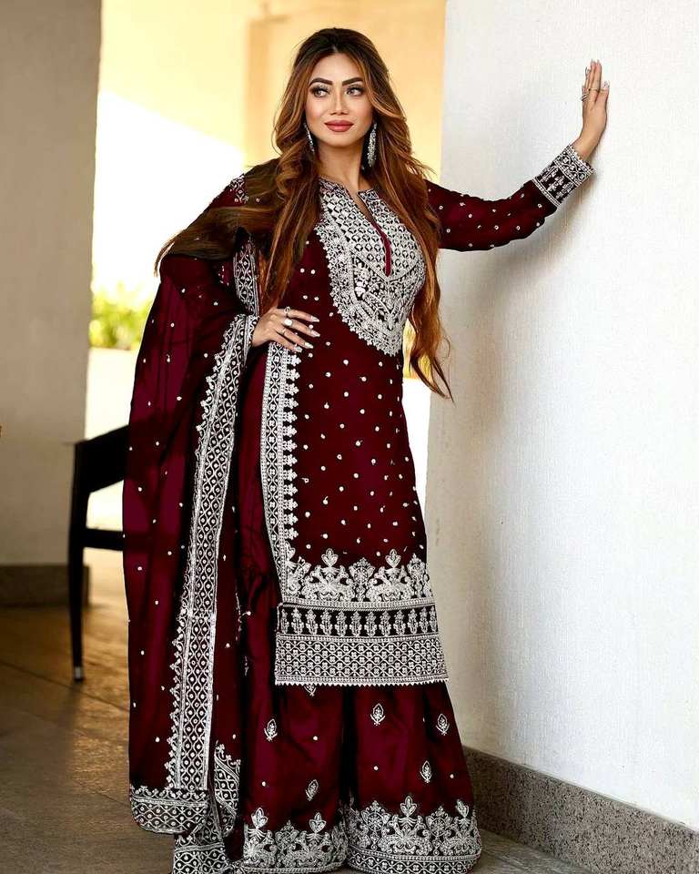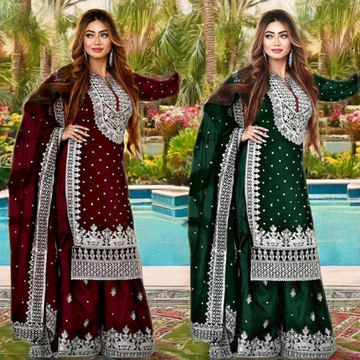 ชุดท็อป-กางาร่าและผ้าคลุมไหล่ งานปักเลื่อมหนักแบบใหม่ พร้อมตัดเย็บสำเร็จ พร้อมสวมใส่