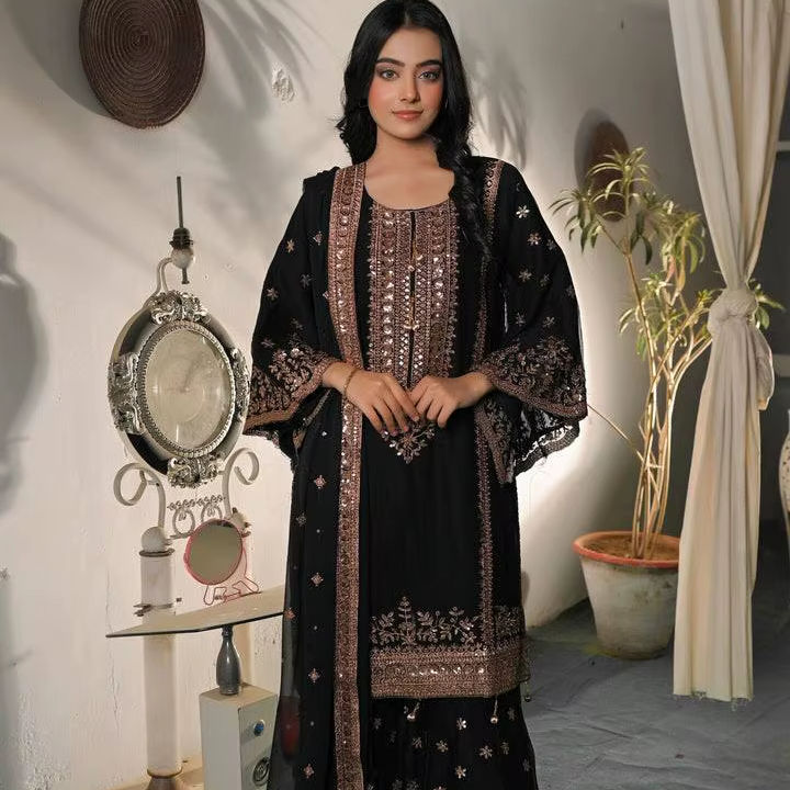 นำเสนอคอลเลคชั่นใหม่พร้อมใส่ ชุดเสื้อ-กระโปรงผ้าไหมปักลายหนักประดับเลื่อม พร้อมผ้าคลุมไหล่ ตัดเย็บสำเร็จพร้อมใส่