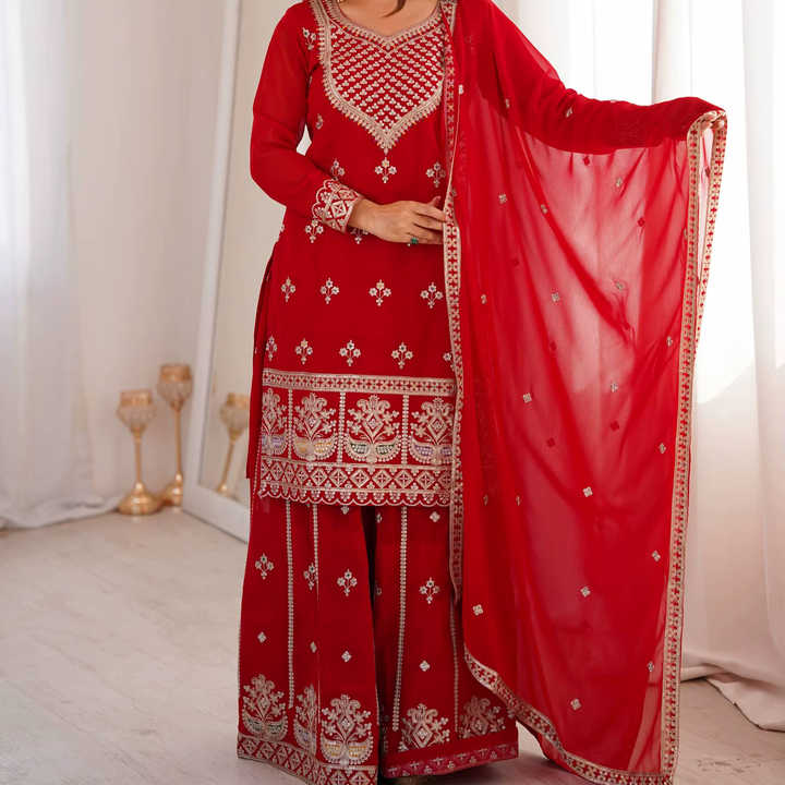 ชุดเสื้อผ้าท็อปผ้าฟ็อกซ์จอร์เจตต์แท้แบบใหม่ พร้อมผ้าคลุมไหล่ ชุดชาราร่าพร้อมสวมใส่