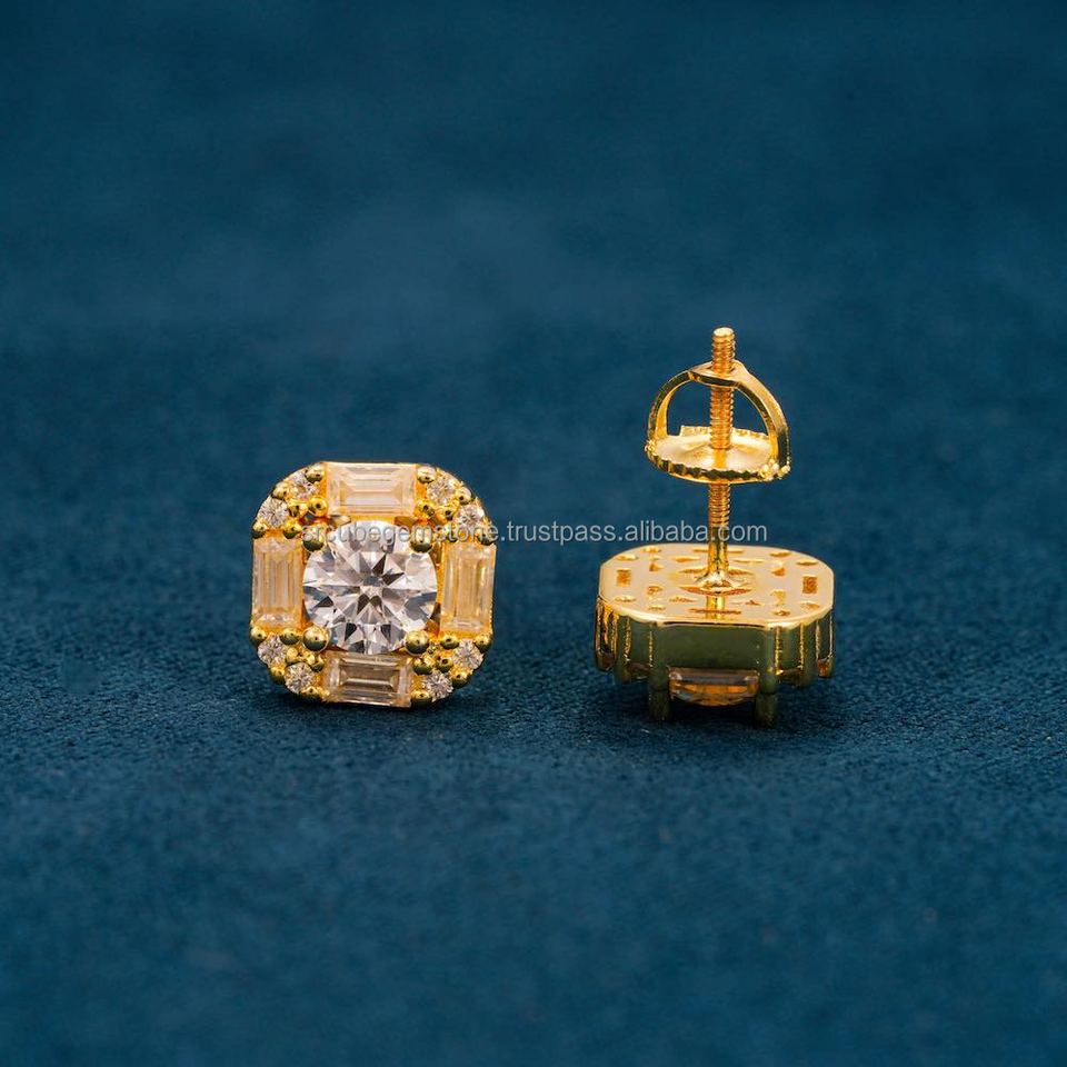 ต่างหูเพชรโมอิสสีขาวชุบทอง14kt ล่าสุดสำหรับผู้หญิงได้รับการรับรองจาก IGI