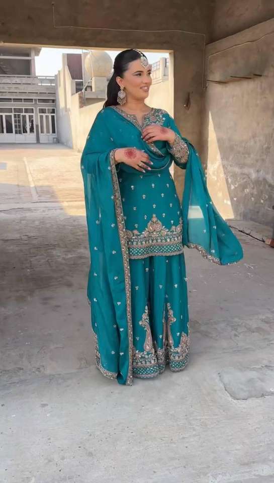 มารูติชุดแต่งงานแฟชั่นสไตล์ดั้งเดิมผ้าไหมหนาผ้าชิรอนหนา5มม. เสื้อปักลำดับงานแขนเต็ม