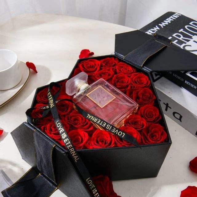 Type:Dried Flowers Hug Bucket, Eternal Rose Box, Heart Shaped Floral Decor