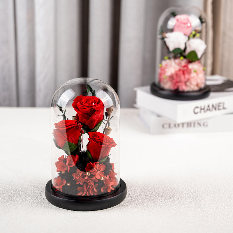 ฝาครอบแก้วประดับมุกกุหลาบกล่องของขวัญวันแม่วันวาเลนไทน์วันเกิดสีแดงสีชมพูของขวัญกุหลาบนิรันดร์
