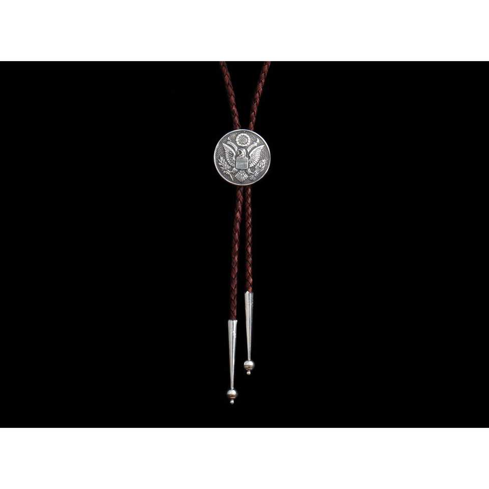 โบโลไทลายตราประทับประธานาธิบดีพร้อมสายหนังสีดำและสีดาร์กช็อกโกแลต