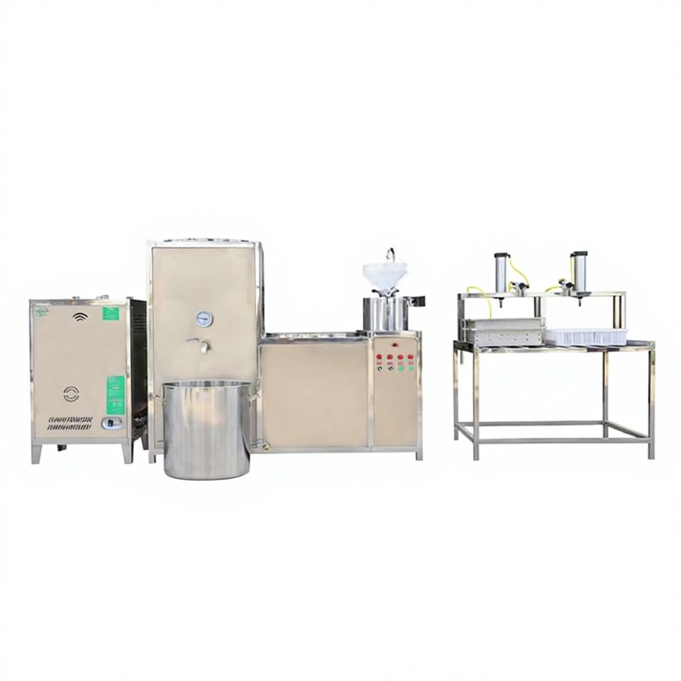 เครื่องทำเต้าหู้อัตโนมัติแบบกดตัด ผลิตจากสแตนเลส ใช้มอเตอร์ กำลังการผลิตสูง พร้อมฟังก์ชั่นทำนมถั่วเหลือง