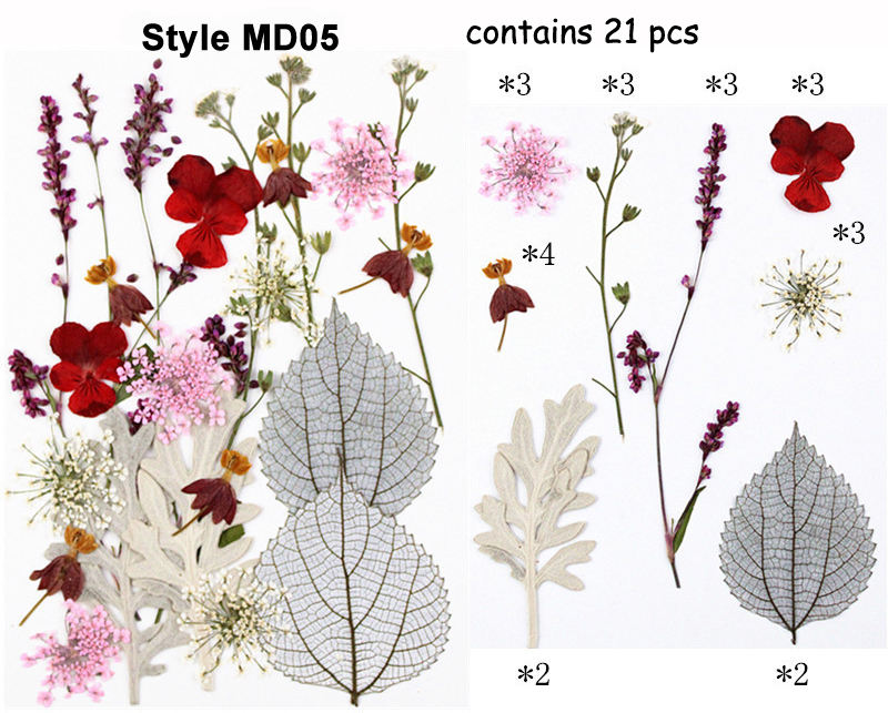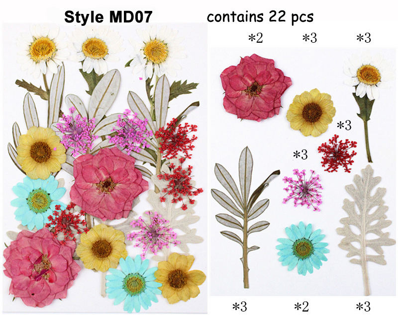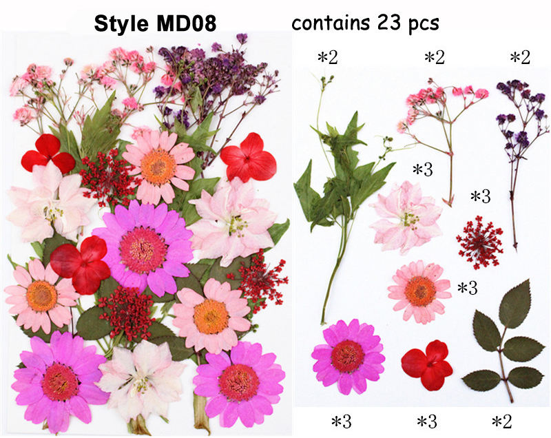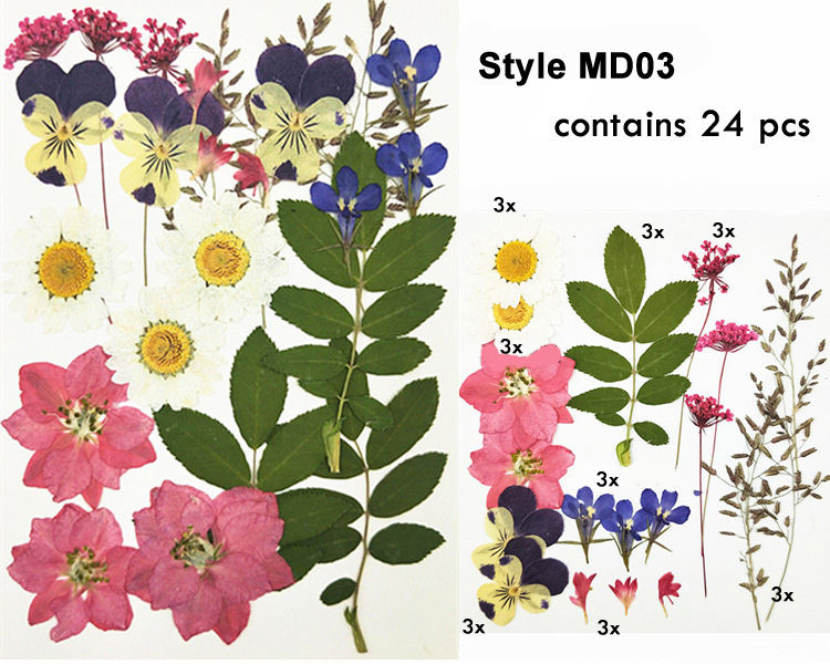 ดอกไม้แห้งอัดเม็ดหลากสีสันสำหรับงานสมุดภาพ การทำการ์ด และงานฝีมือ ตกแต่งเคสมือถือ กรอบรูป