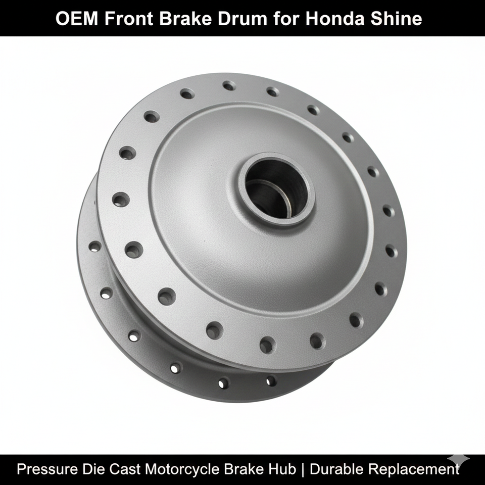 ดรัมเบรกหน้าแบบหล่อขึ้นรูปด้วยแรงดันสำหรับรถมอเตอร์ไซค์ฮอนด้า ไชน์ | ดุมเบรกดรัมความแข็งแรงสูง | อะไหล่ทดแทนของแท้จากผู้ผลิต (OEM)