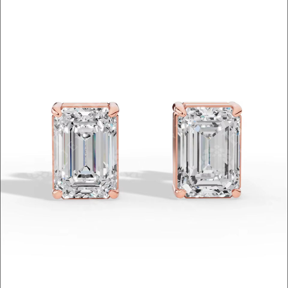 Prestige Emerald Cut Solitaire Lab Grown Diamond Stud Earrings 18K Gold Luxury Fine Jewelry Wholesale Supplier