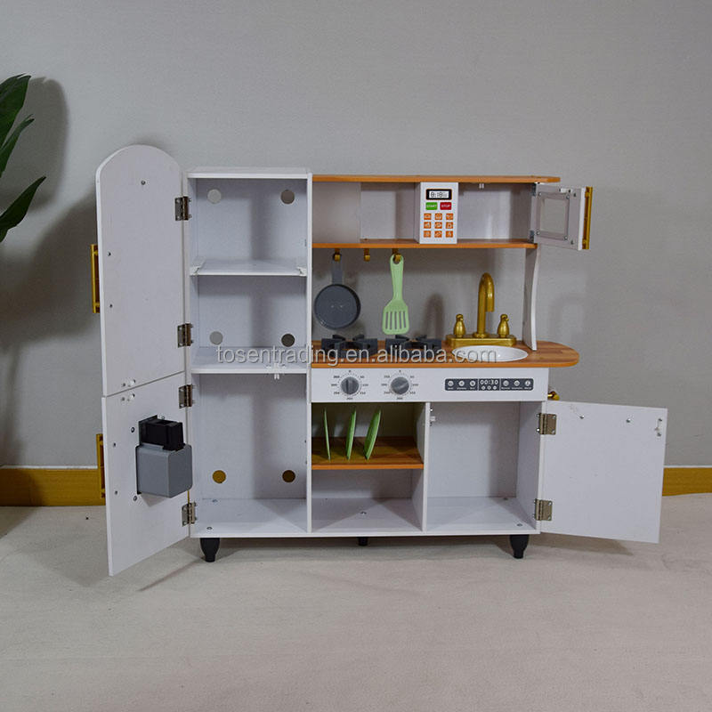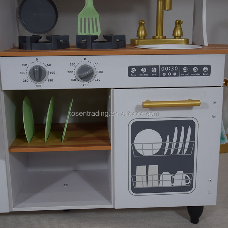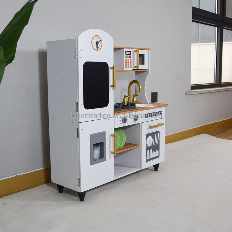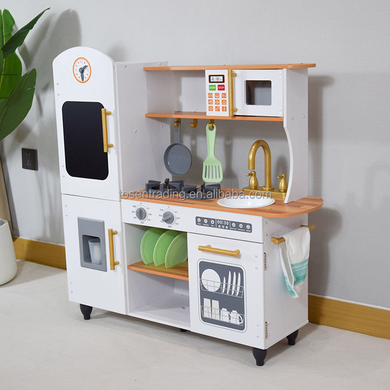 ชุดครัวไม้สีขาวสไตล์วินเทจสำหรับเด็ก พร้อมตู้เย็น เตาอบ ไมโครเวฟ อ่างล้างจาน และเครื่องซักผ้า สำหรับเล่นบทบาทสมมติ