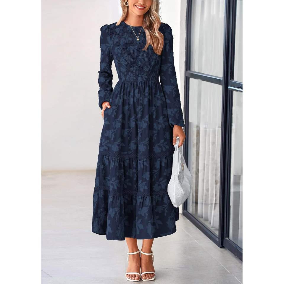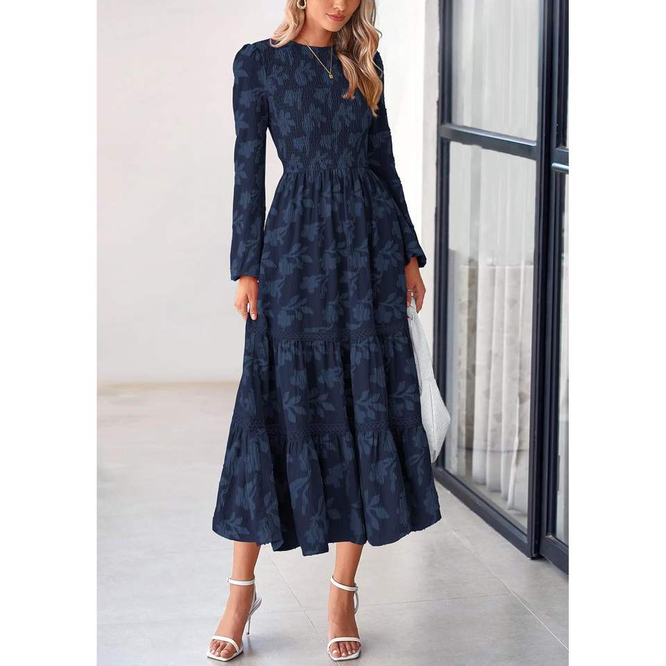 เดรสยาวลายดอกไม้สไตล์โบฮีเมียนสำหรับผู้หญิง ฤดูใบไม้ร่วง ปี 2025 จาก PrettYGARDEN ดีไซน์หรูหรา เรียบร้อย เหมาะสำหรับงานแต่งงาน ทรงหลวมพลิ้วไหว สไตล์ค็อกเทล