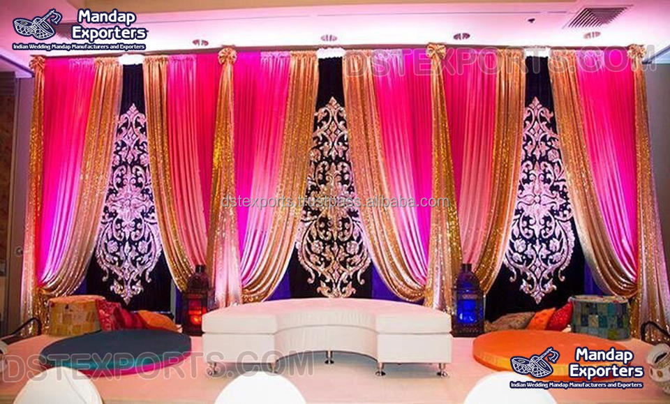 ม่านฉากหลังที่สวยที่สุดสำหรับตกแต่งเวทีงานแต่งงานอินเดียฉากหลังม่านสำหรับตกแต่งงานปาร์ตี้