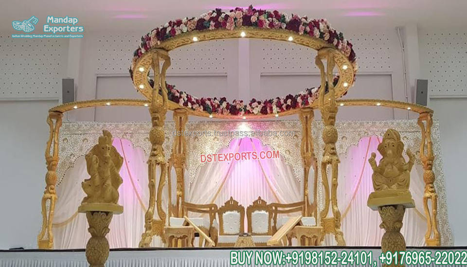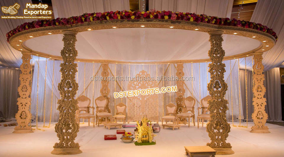 Prettiest Hindu Marriage Wooden Carved Triveni Mandap