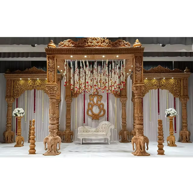 Mandap ไม้งานแต่งงานที่สวยที่สุดสำหรับงานแต่งงานของมหาราชานีประเพณี mandap ไม้งานแต่งงาน