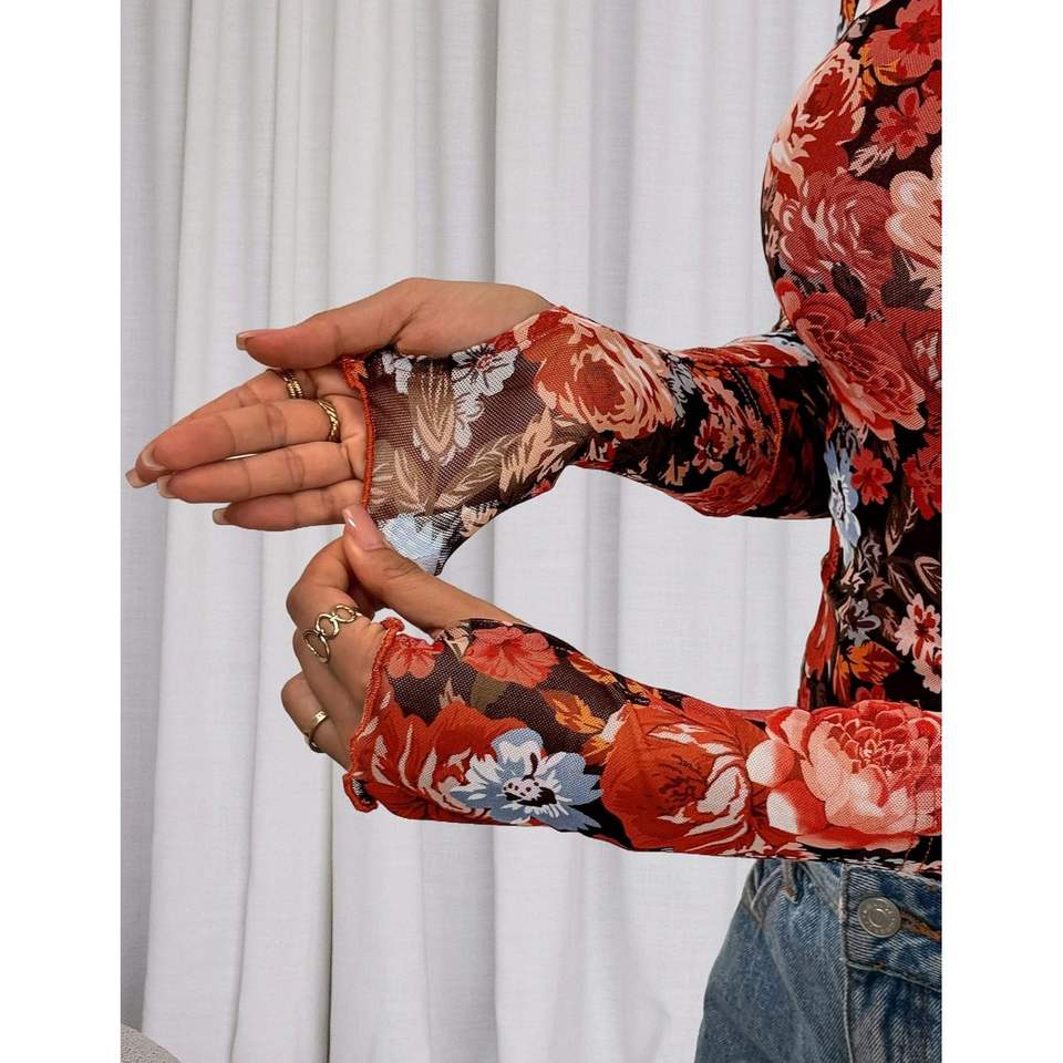 เสื้อเบลาส์ผ้าตาข่ายลายดอกไม้แขนยาวไซส์ฟรีสำหรับผู้หญิง คอลเลคชั่นฤดูใบไม้ร่วง 2025 เหมาะสำหรับใส่ออกเดท ชุดออกงานกลางคืน เสื้อเชิ้ตเข้ารูปสำหรับใส่ออกไปข้างนอก