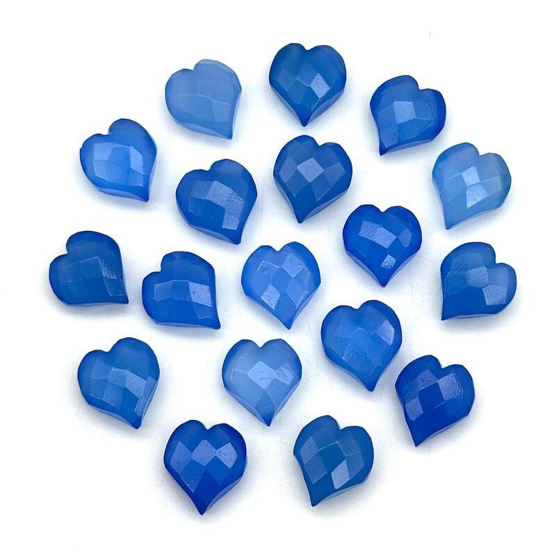 ลูกปัดรูปหัวใจคาลเซโดนีสีฟ้าสวยเครื่องรางลูกปัดรูปหัวใจเหลี่ยมเพชรพลอยแกะสลักด้วยมือสำหรับทำเครื่องประดับขนาด13มม.