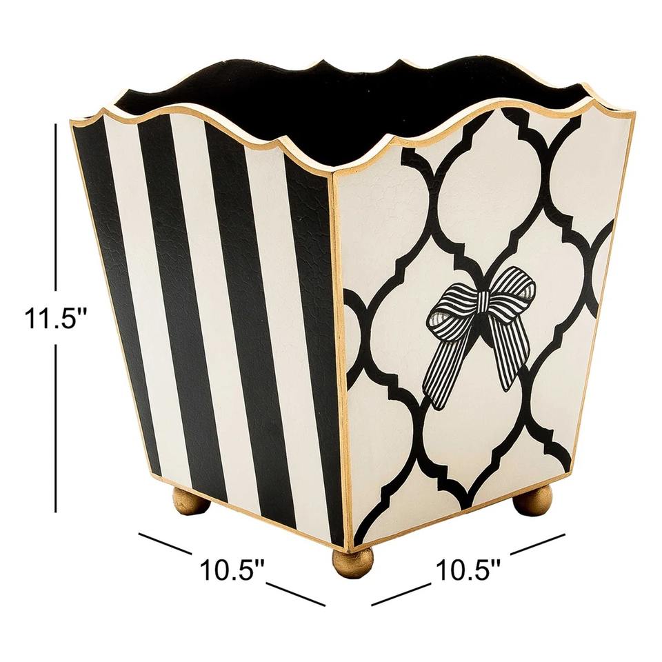ถังขยะลายโบว์สวยงาม วาดลายด้วยมือ สีดำขาว ทำจากไม้ เหมาะสำหรับห้องเด็ก โต๊ะเรียน หรือตกแต่งห้องรับแขก จากอินเดีย