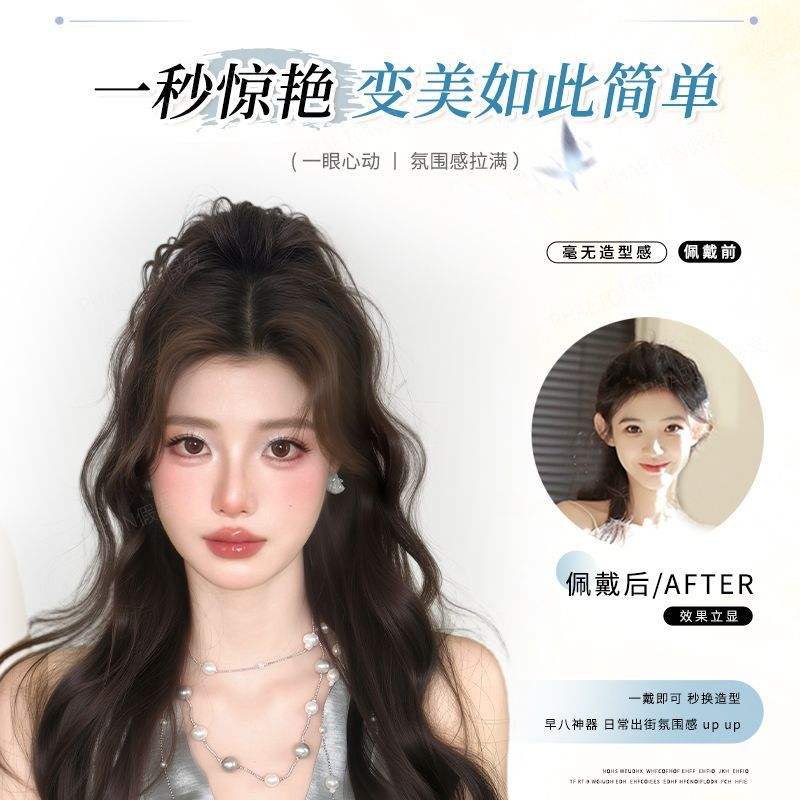 วิกผมหางม้าแบบคลิปออน ใยสังเคราะห์คาเนคาลอน ลอนน้ำ ทรงสูง ปริมาณผมมาก ไม่ต้องใช้กาว เหมาะกับทุกรูปหน้า