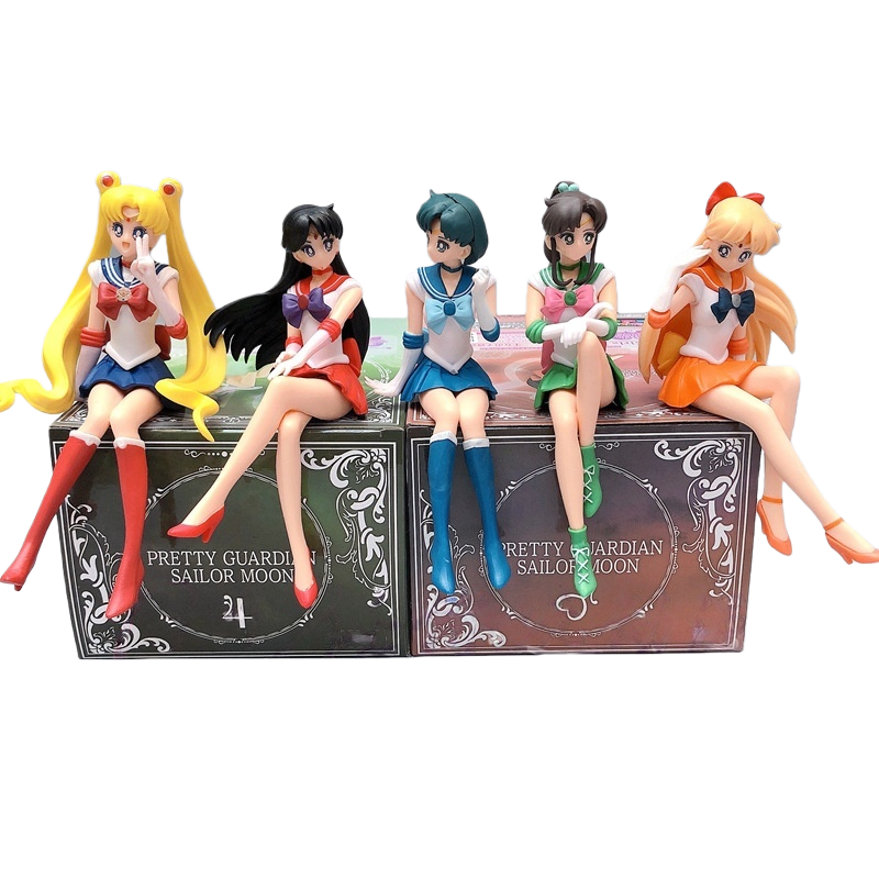 ฟิกเกอร์อนิเมะเซเลอร์มูน ชุดนักเรียนกะลาสี 5 ตัว ท่าทางนั่ง สำหรับนักสะสมและตกแต่งโต๊ะทำงาน