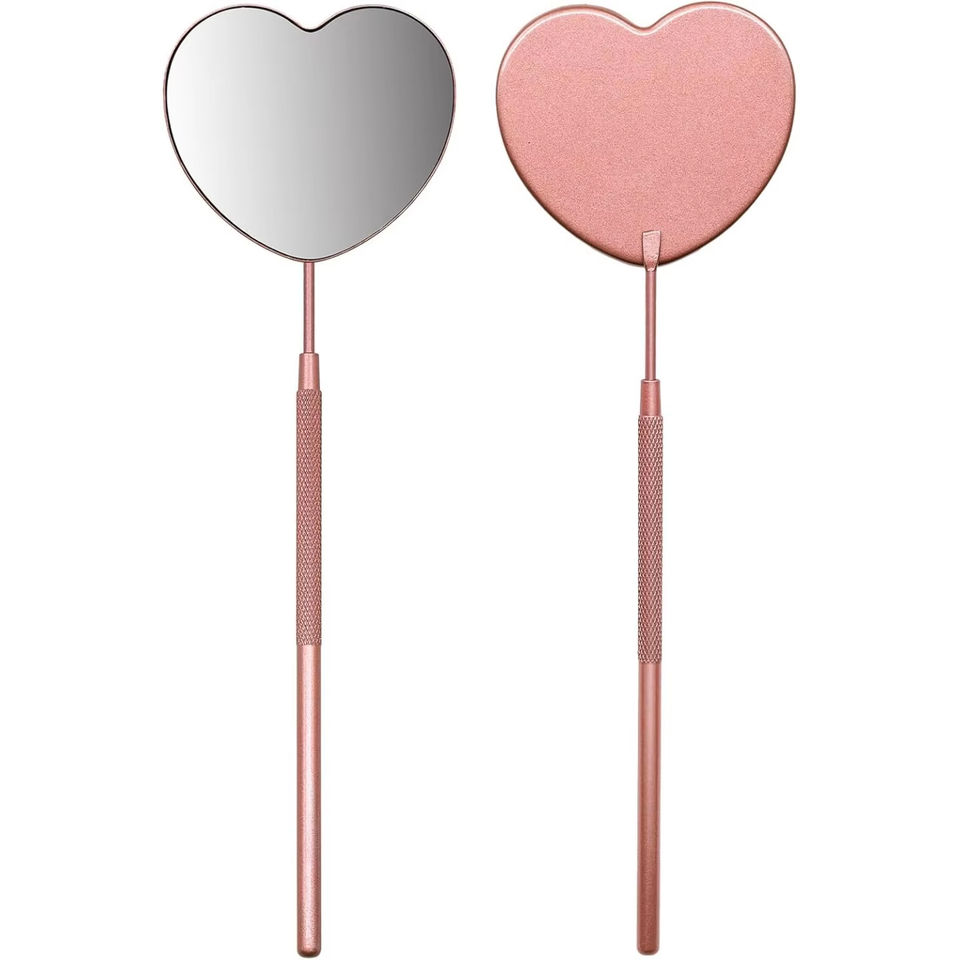 กระจกแต่งหน้าทำจากสเตนเลสรูปหัวใจสวยแหล่งจ่ายไฟด้วยมืออุปกรณ์เสริมการต่อขนตาโดย vaslcare