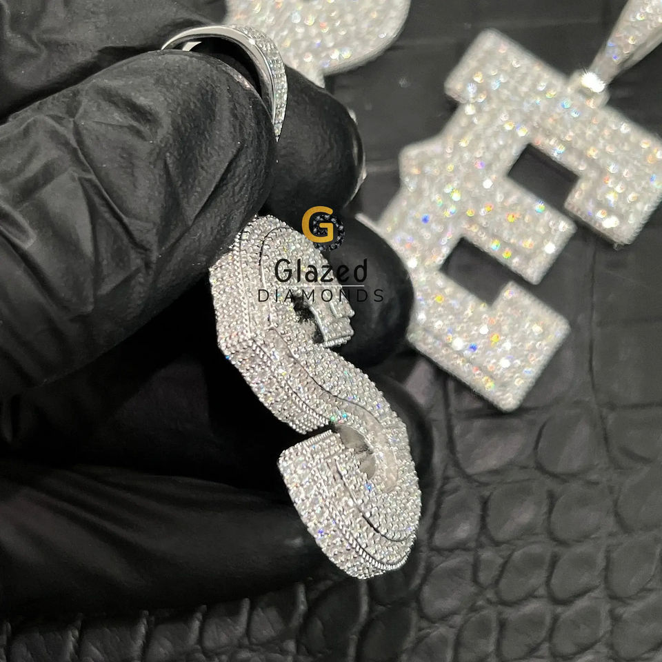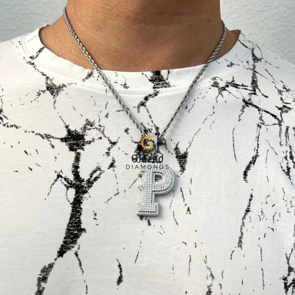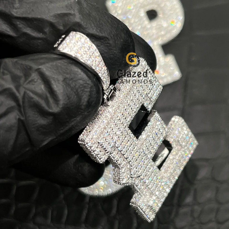 จี้รูปตัวอักษรฮิปฮอปสวยหรู ประดับเพชรทรงกลมเจียระไนแบบบริลเลียนท์ทั้งชิ้น ด้วยทองคำขาว 10K และเพชรเพาะเลี้ยง