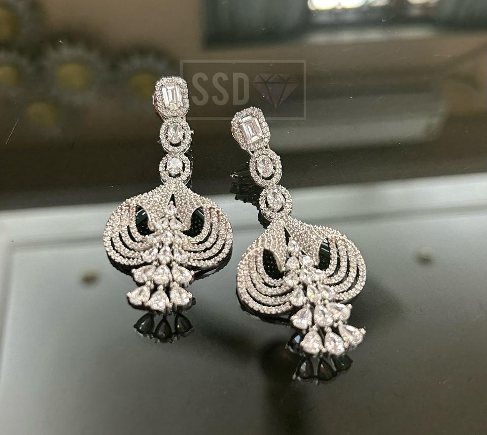 ต่างหูห้อยประดับเพชรซีกอนชุบเงินคุณภาพพรีเมียมสวยงามทันสมัยสำหรับผู้หญิงใส่ไปงานกลางคืน ระยิบระยับสะดุดตา