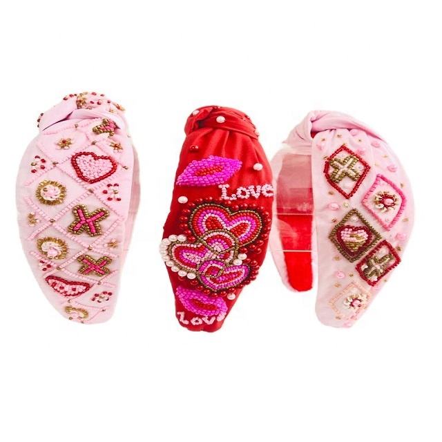 แถบคาดศีรษะปักด้วยมือสำหรับเด็กผู้หญิงแบบมีสไตล์สไตล์แนวอินเดียรักวันวาเลนไทน์เครื่องประดับผมประดับลูกปัดที่คาดผมสวย